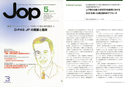 さて、この度、Journal of Orthodontic Practice(臨床ジャーナル)と呼ばれる矯正雑誌の2016年5月号に私の症例報告がClinical Lectureとして掲載されましたのでご報告させていただきます。