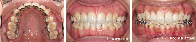 金属で出来た装置を用いますが、歯の裏側に装置を付けるため、人知れず矯正治療を進めて歯並びの改善を行うことが可能です。
